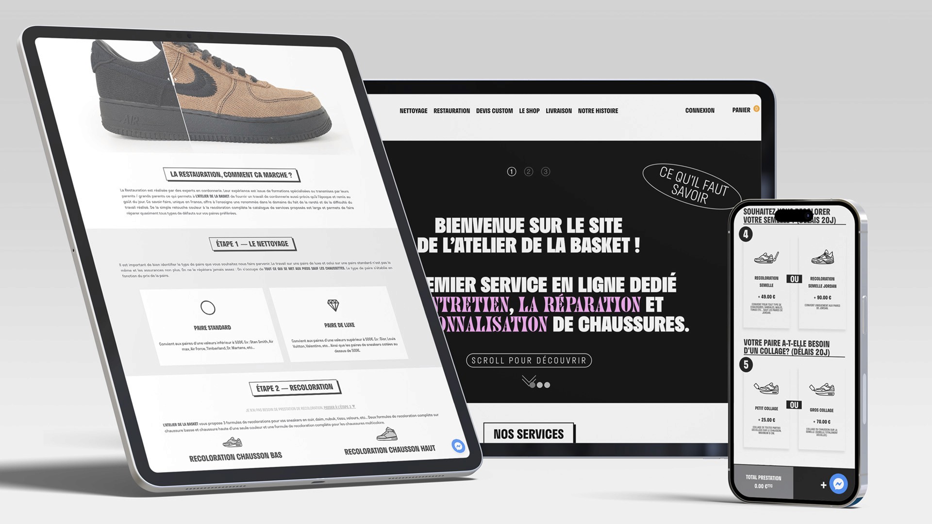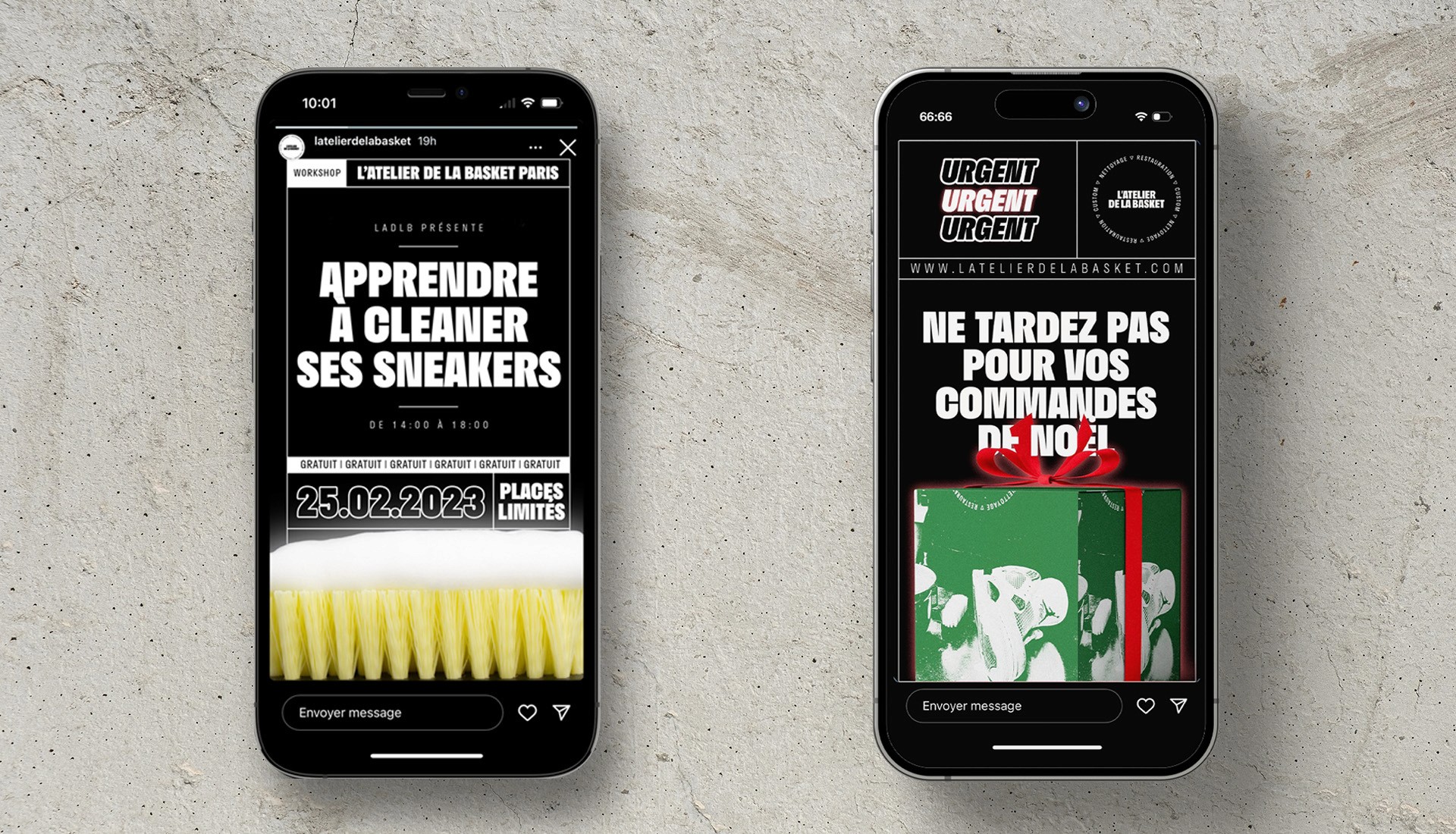 Créé en 2017 par Gregory et Thomas, L’atelier de la basket n’a toujours eu qu’une seule ambition: conquérir le marché du «Sneakers Care» en France. Petit-fils de cordonniers, ils mettent en avant le savoir-faire artisanal tout en développant de nouvelles méthodes d’entretien pour s’adapter au matériaux modernes (flyknite, plastiques, etc..) et élaborent leurs propres produits de nettoyage.